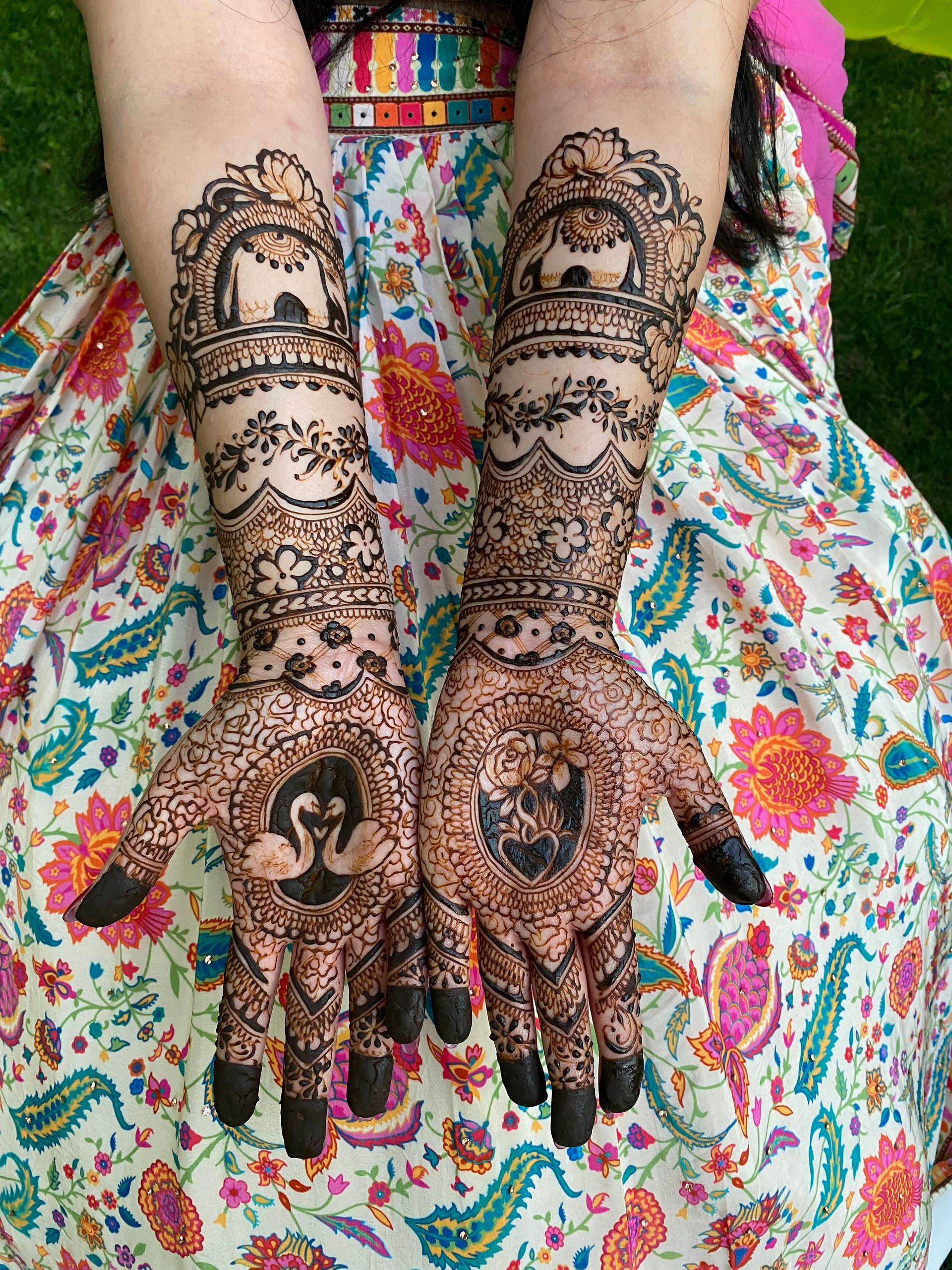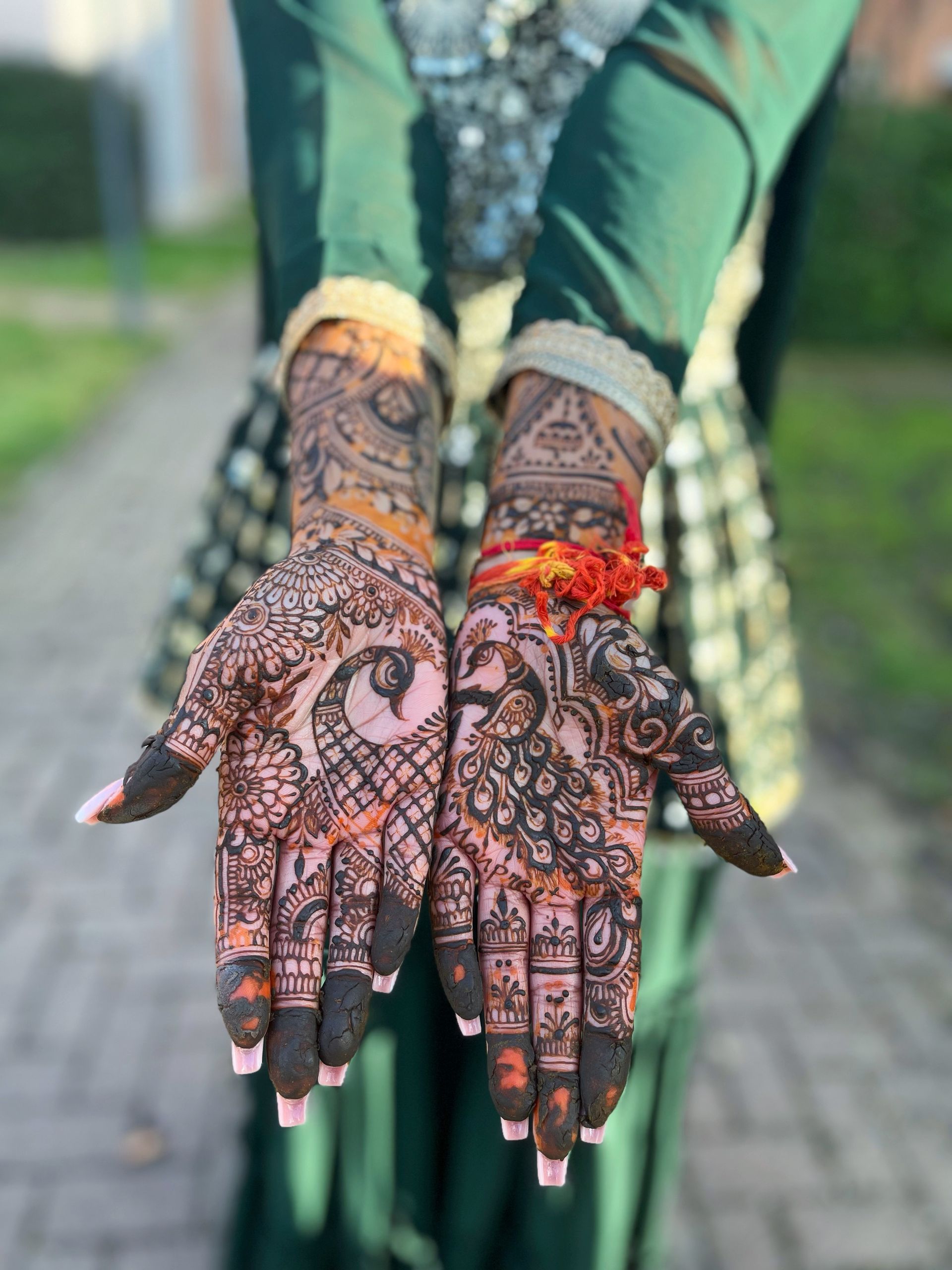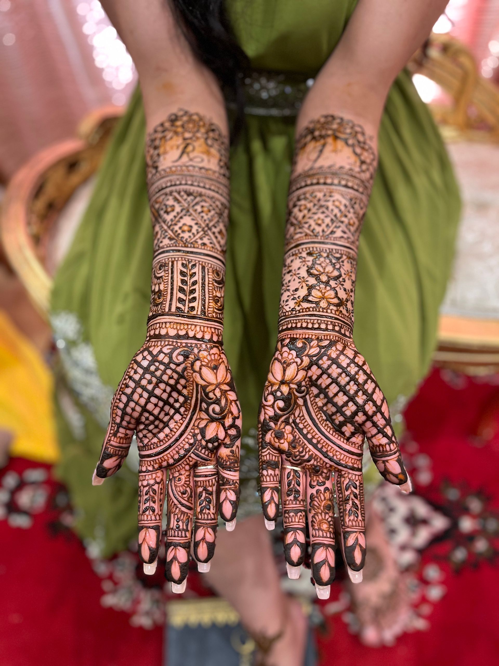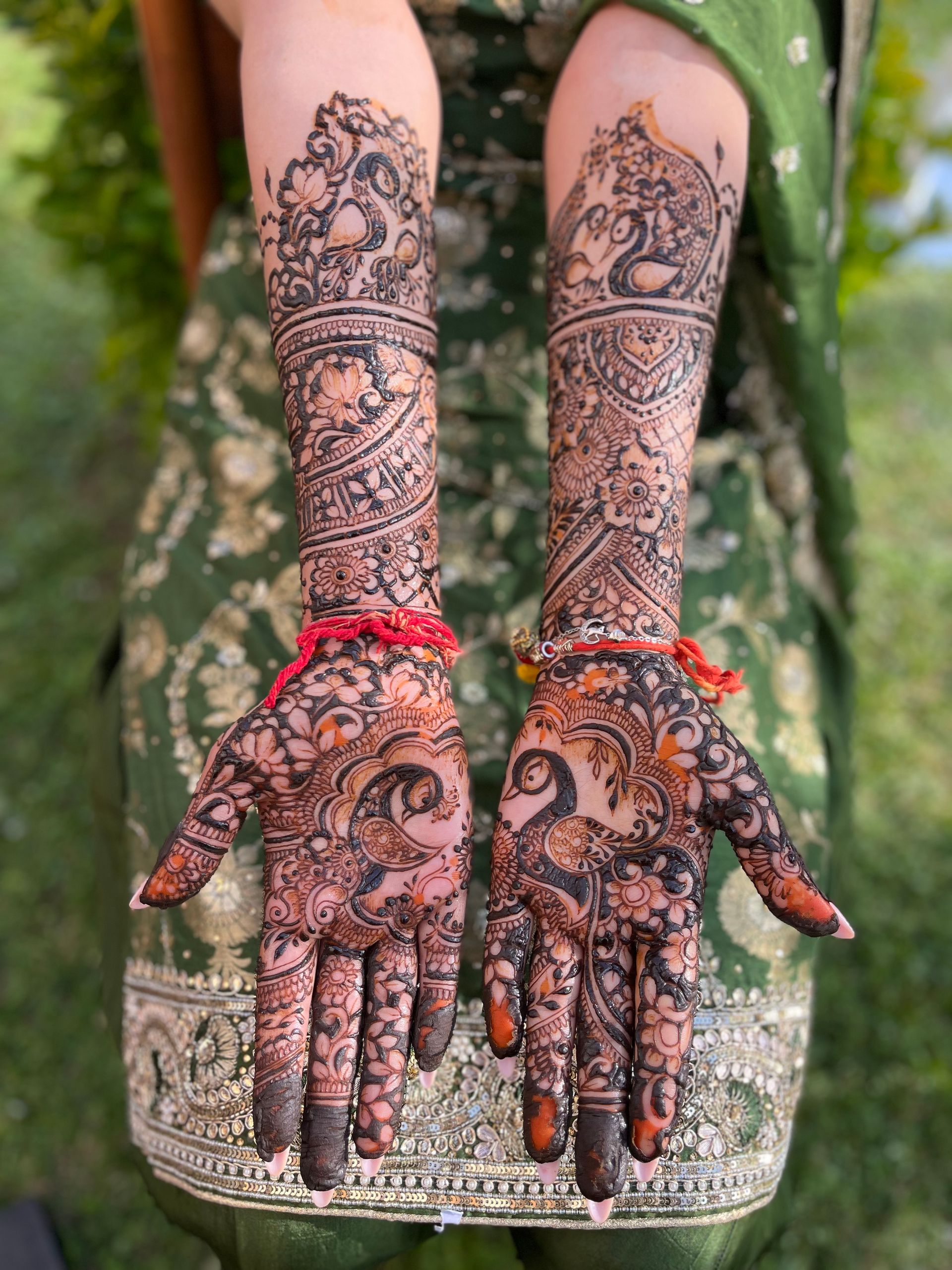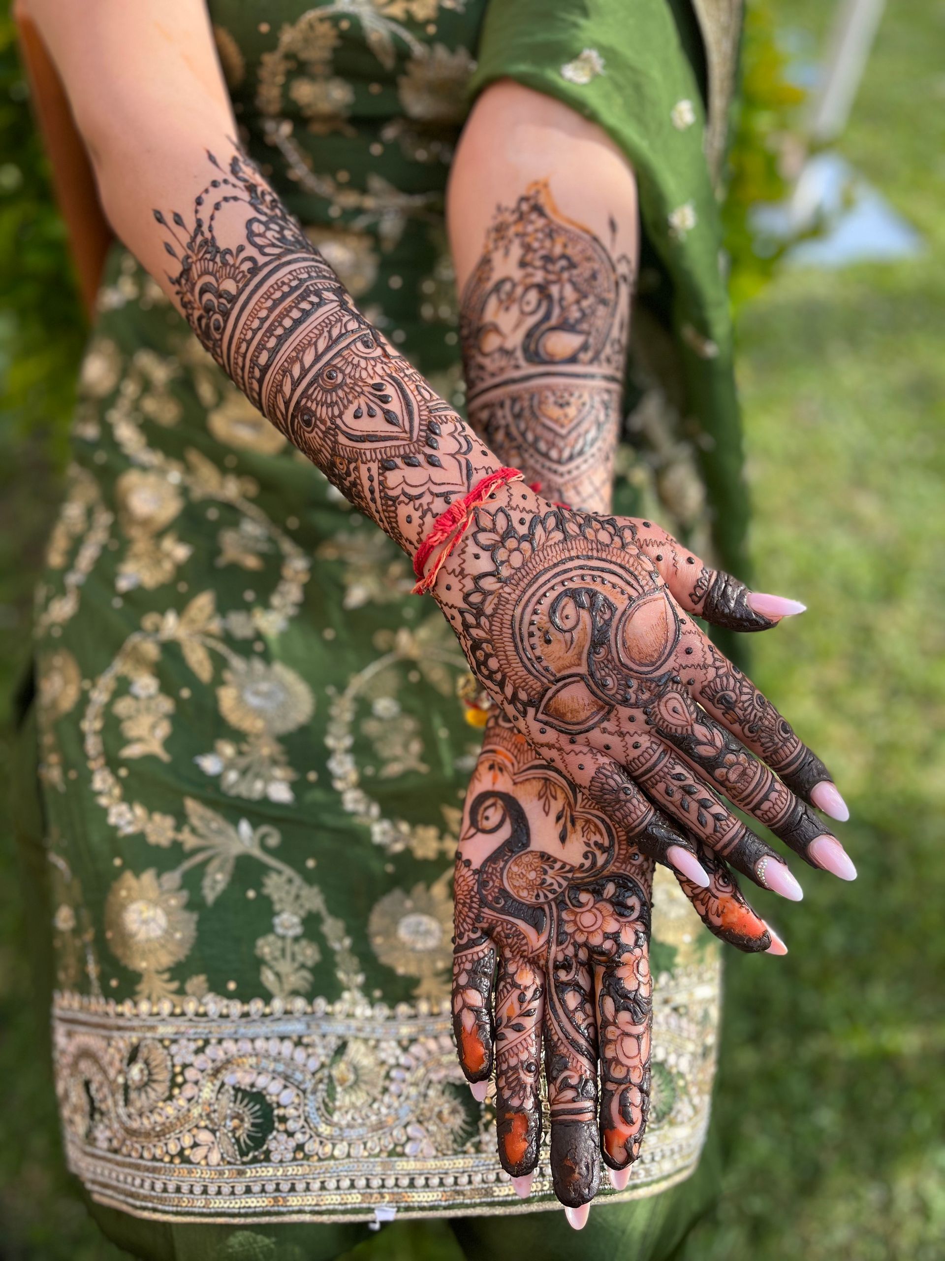 "Alice, you mehendi was just perfect! Everyone appreciated your speed and you precision. I've never met any henna artist that can finish such an intricate mehndi design in less than 3 hours. Thank you so much, I hope to see you again!"
