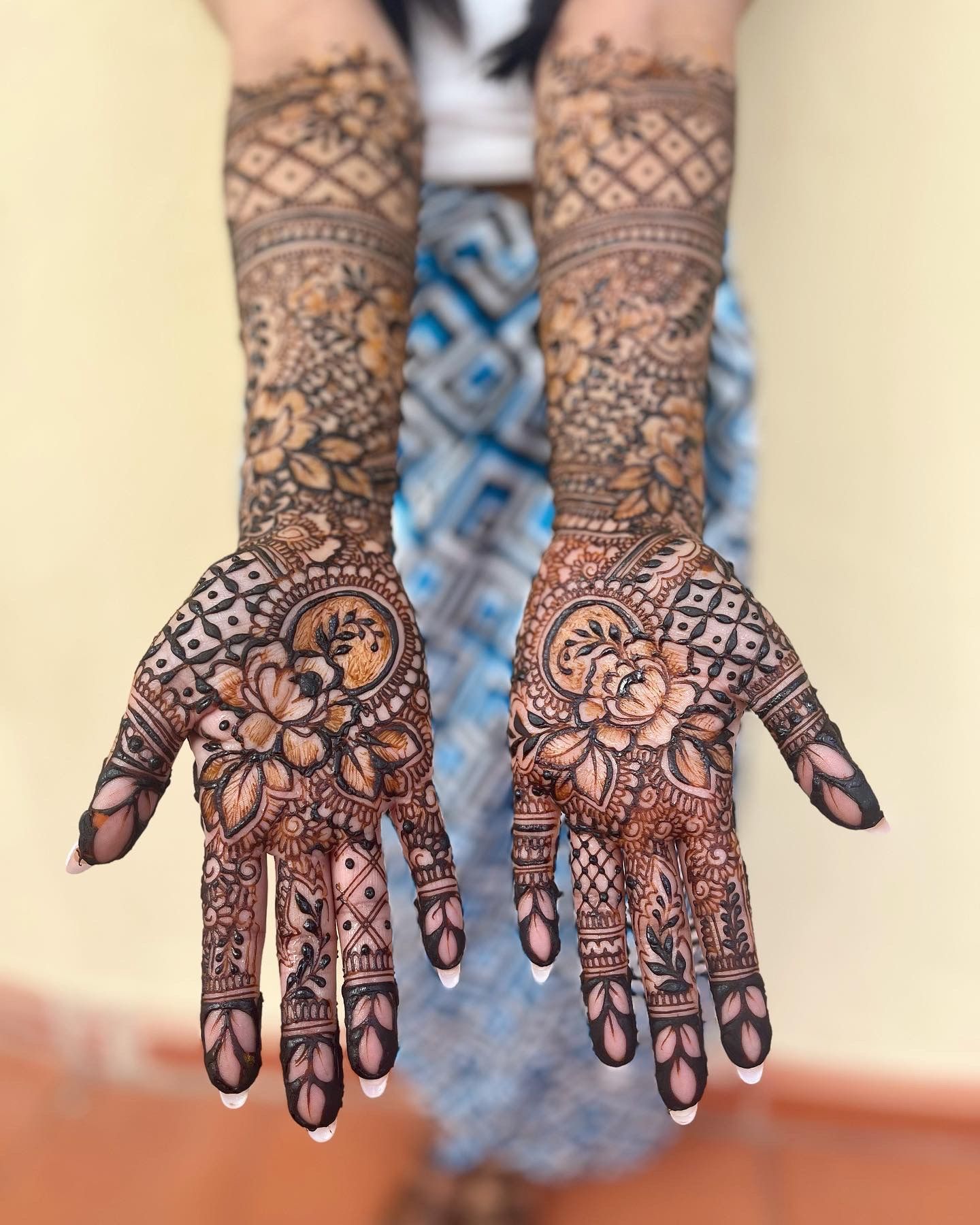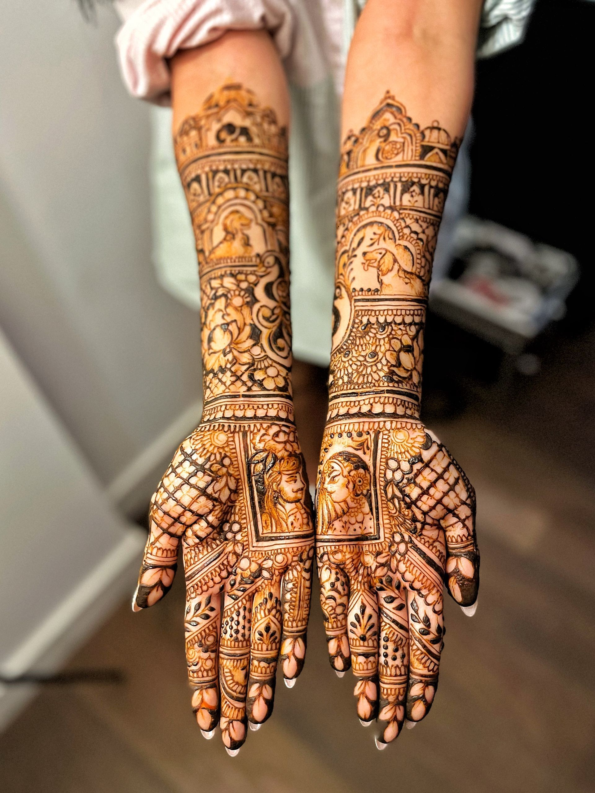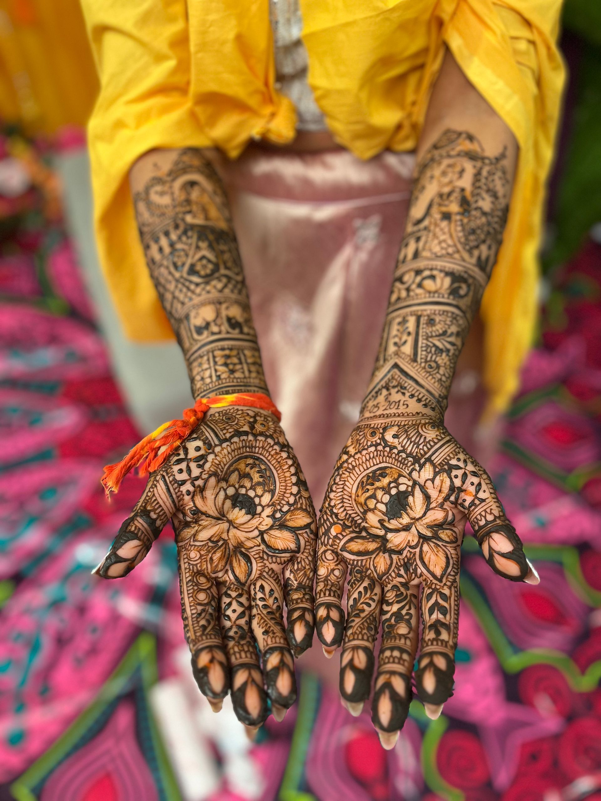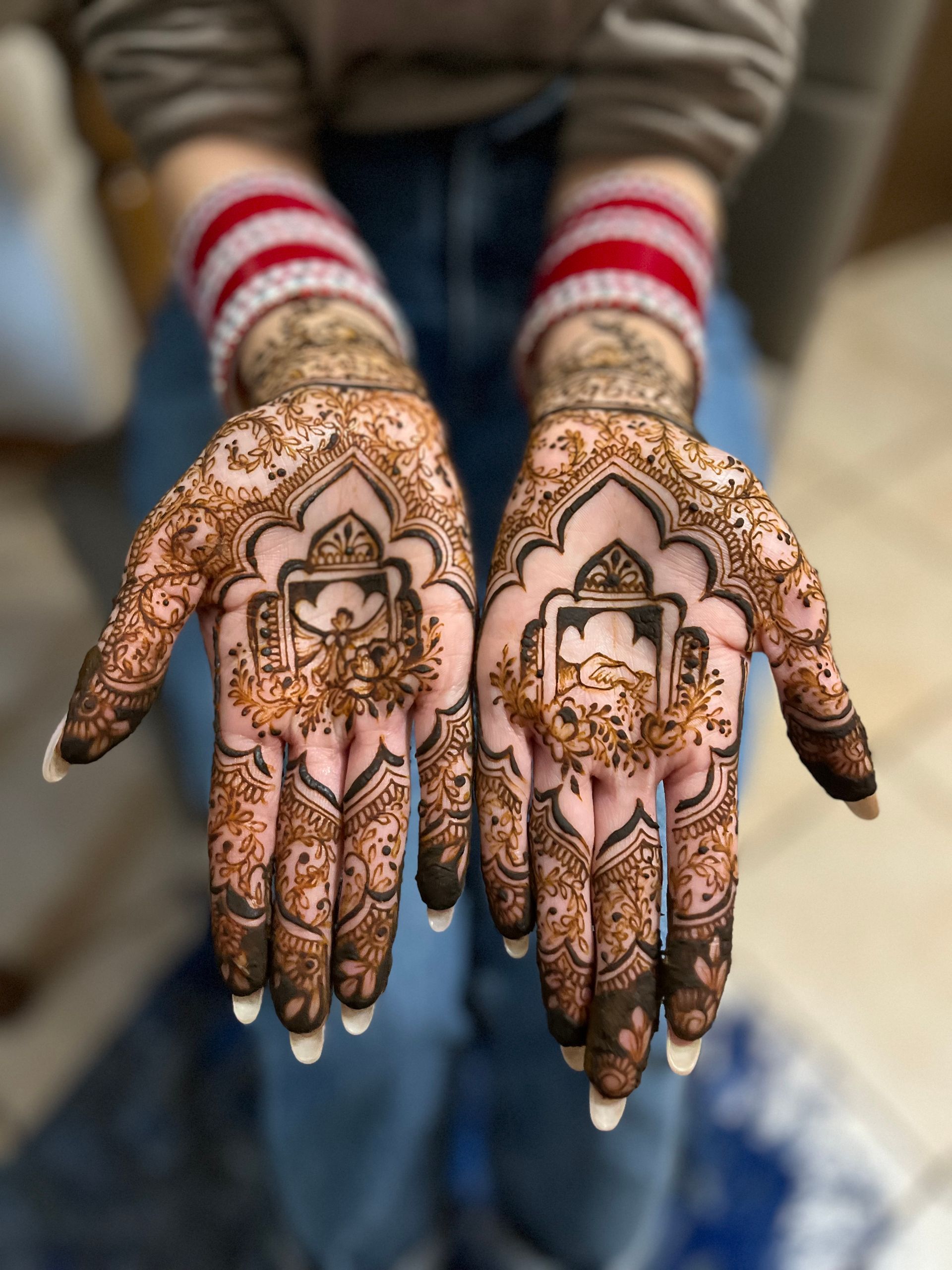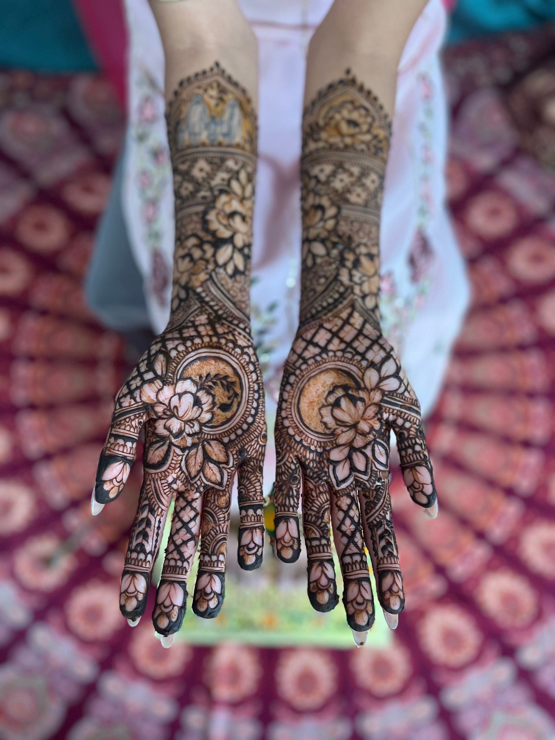 "Alice, you mehendi was just perfect! Everyone appreciated your speed and you precision. I've never met any henna artist that can finish such an intricate mehndi design in less than 3 hours. Thank you so much, I hope to see you again!"