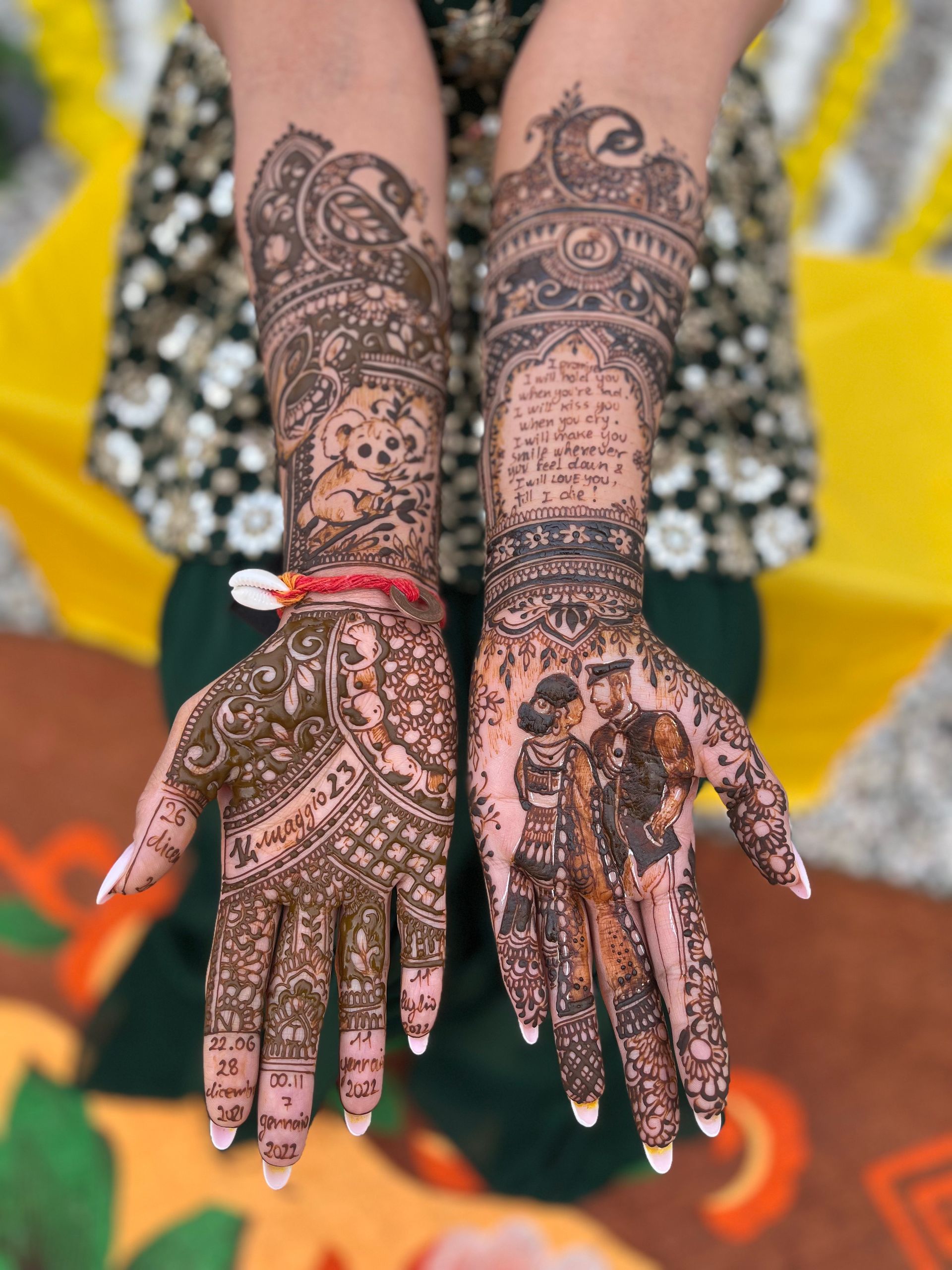 "I met Alice at my Mehndi function this summer, exactly in August. I'm not a henna lover but for the very first time in my life I've completely fallen in love with all my heart for what she did for me. Lots of people complimented me and this wouldn't have been possible without the work of such a talented artist like her! ♡ The stain says it all."